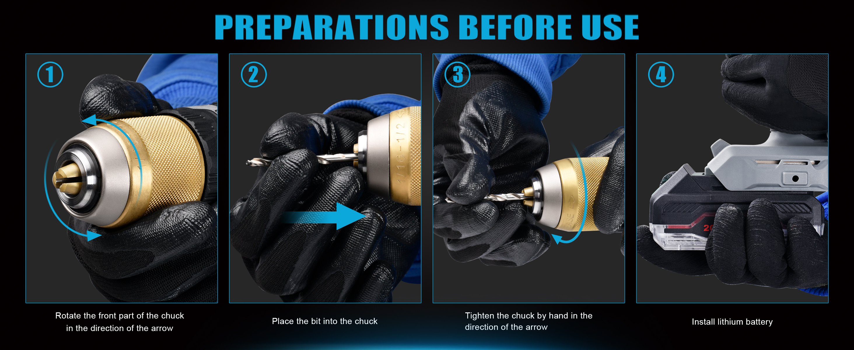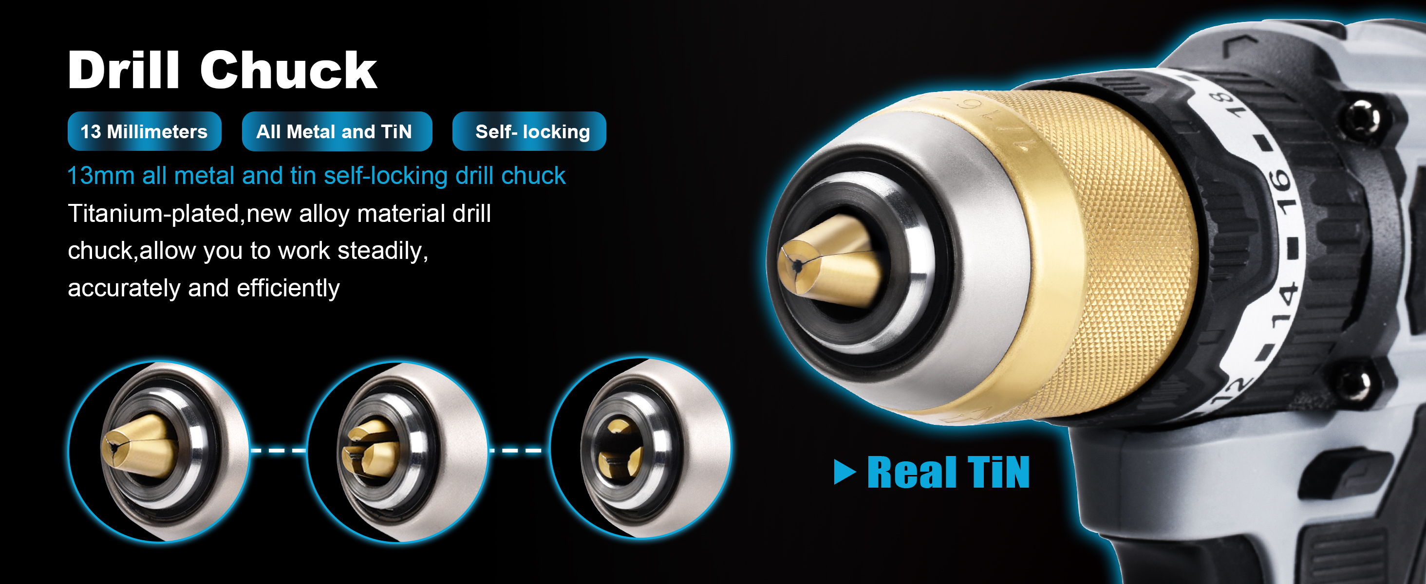 - Titanium-plated,new alloy material drill chuck,allowyou to work steadily, accurately, and efficientlyHigh